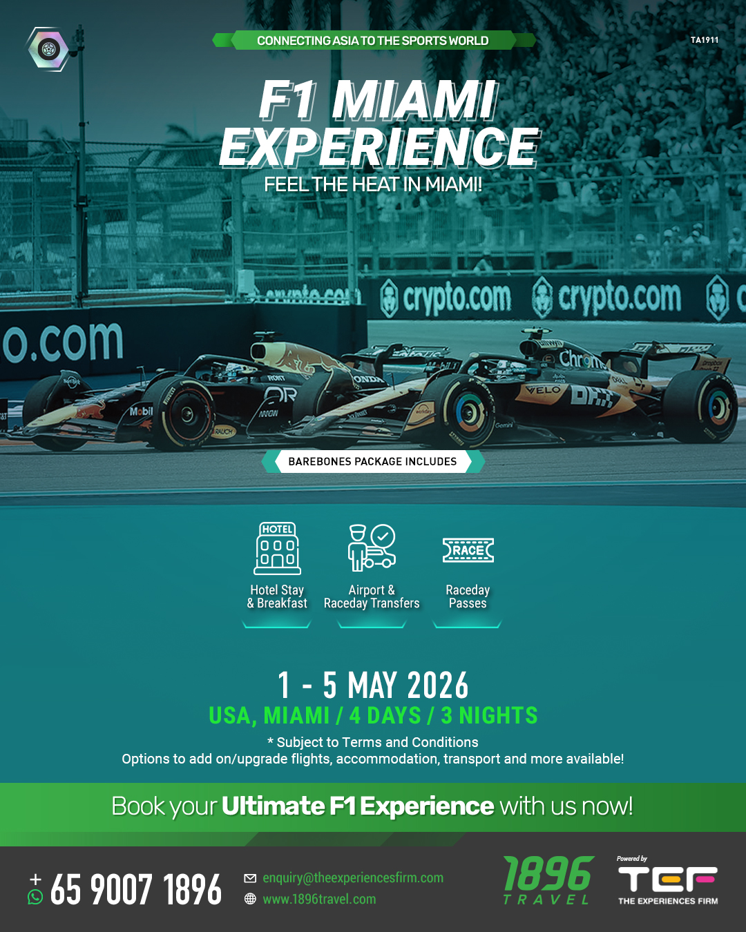 - 3 Day Race Pass to F1 Miami 2026 (Paddock Club/Champions Club/Grandstand) (depending on your choice!)