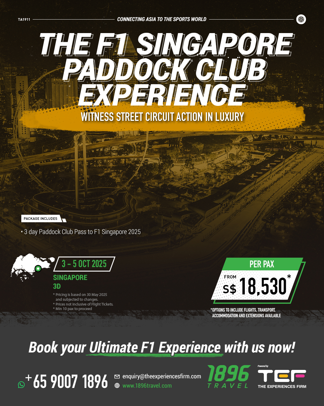 - 3 Day Paddock Club Access to F1 Singapore 2025