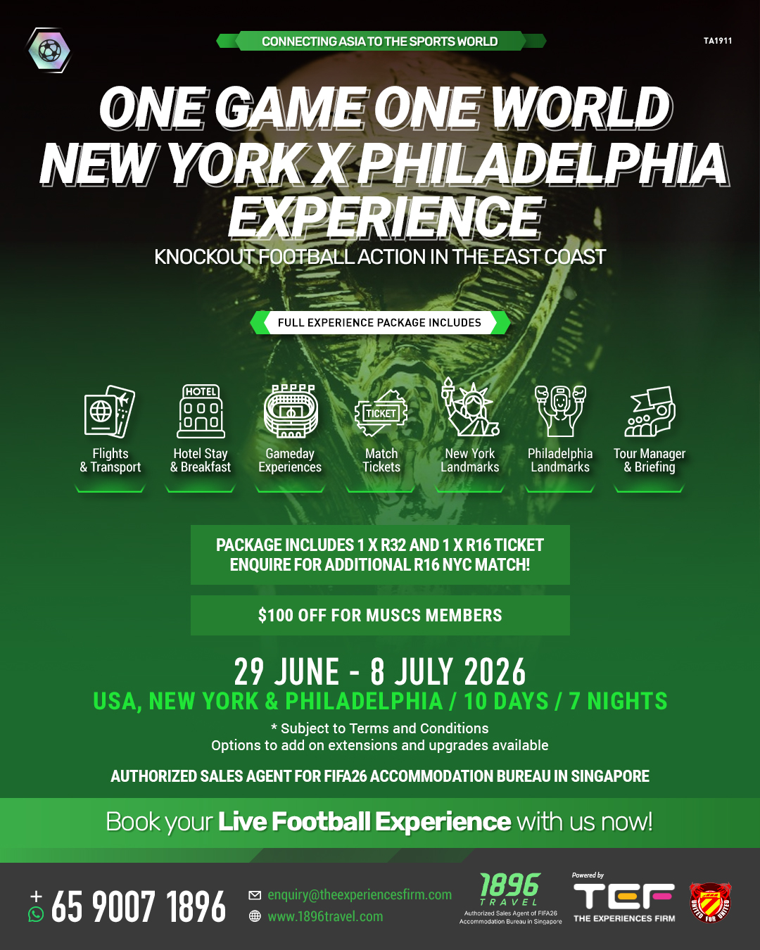 - One Singapore Tour Manager with knowledge on USA and the FWC 26
