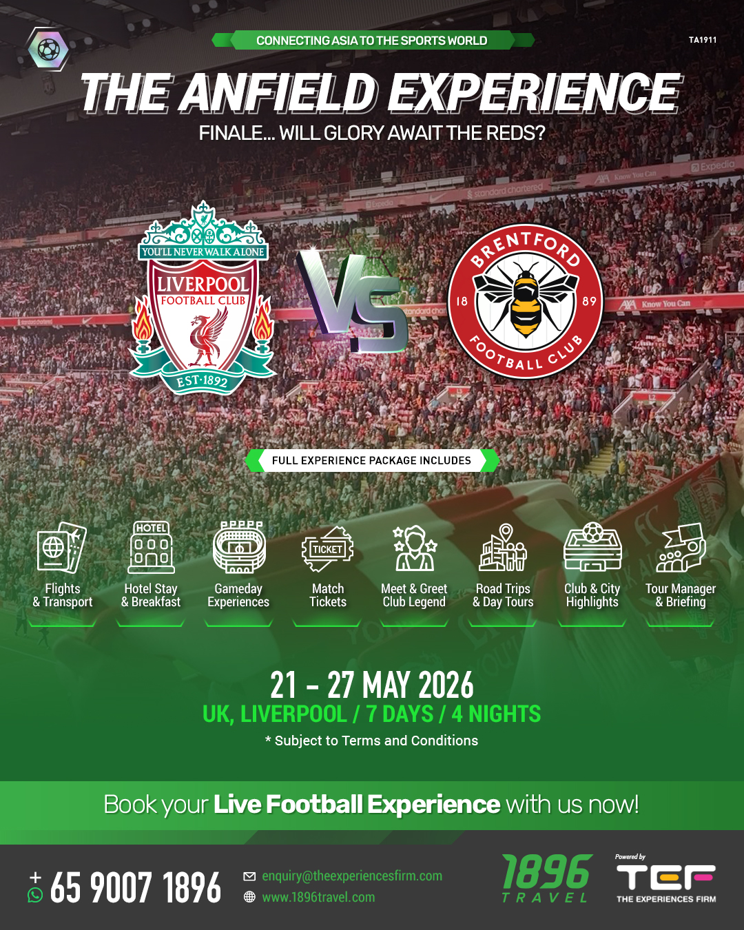 - One Singapore Tour Manager with in-depth knowledge of Liverpool FC and Liverpool, UK