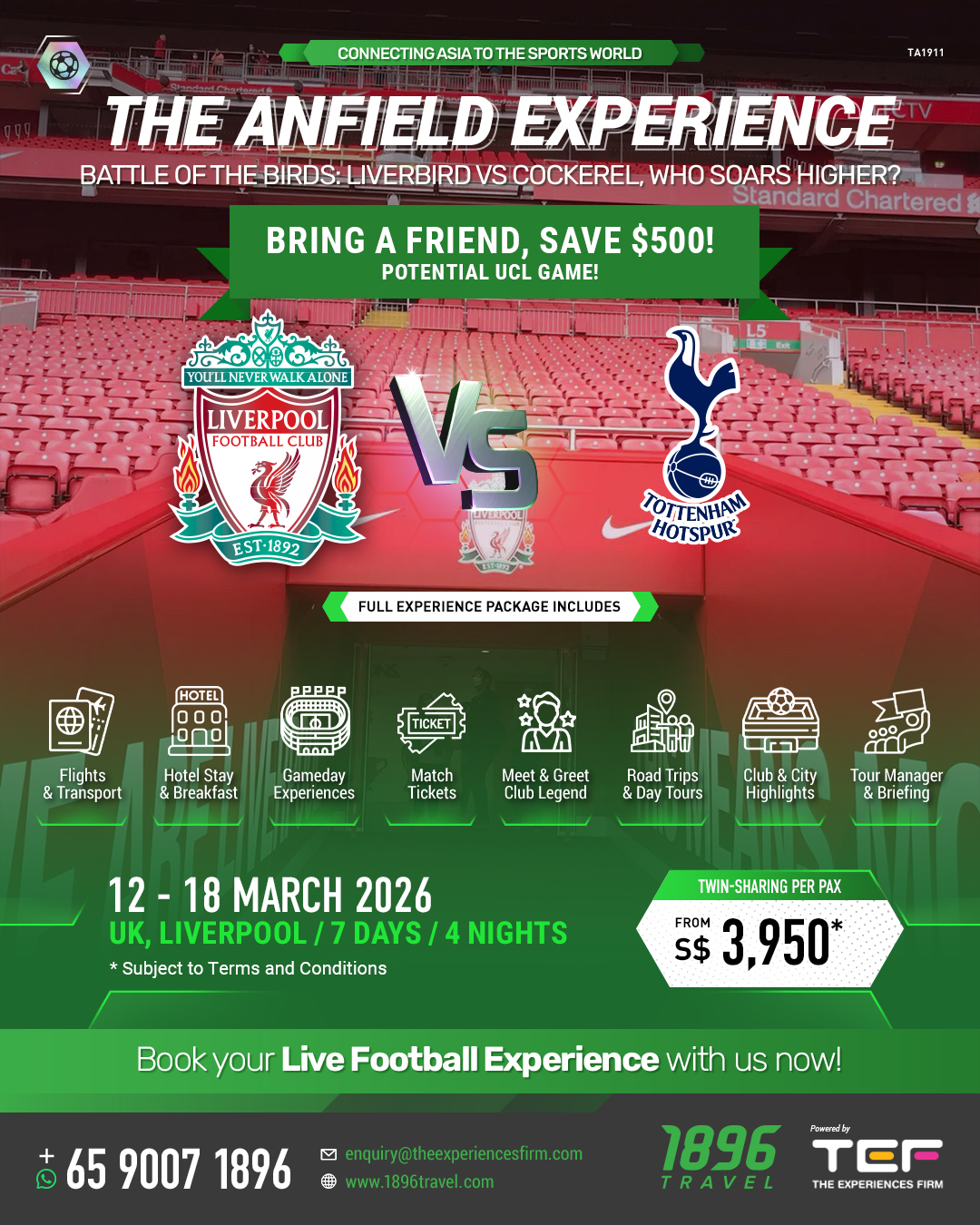 - One Singapore Tour Manager with in-depth knowledge of Liverpool FC and Liverpool, UK