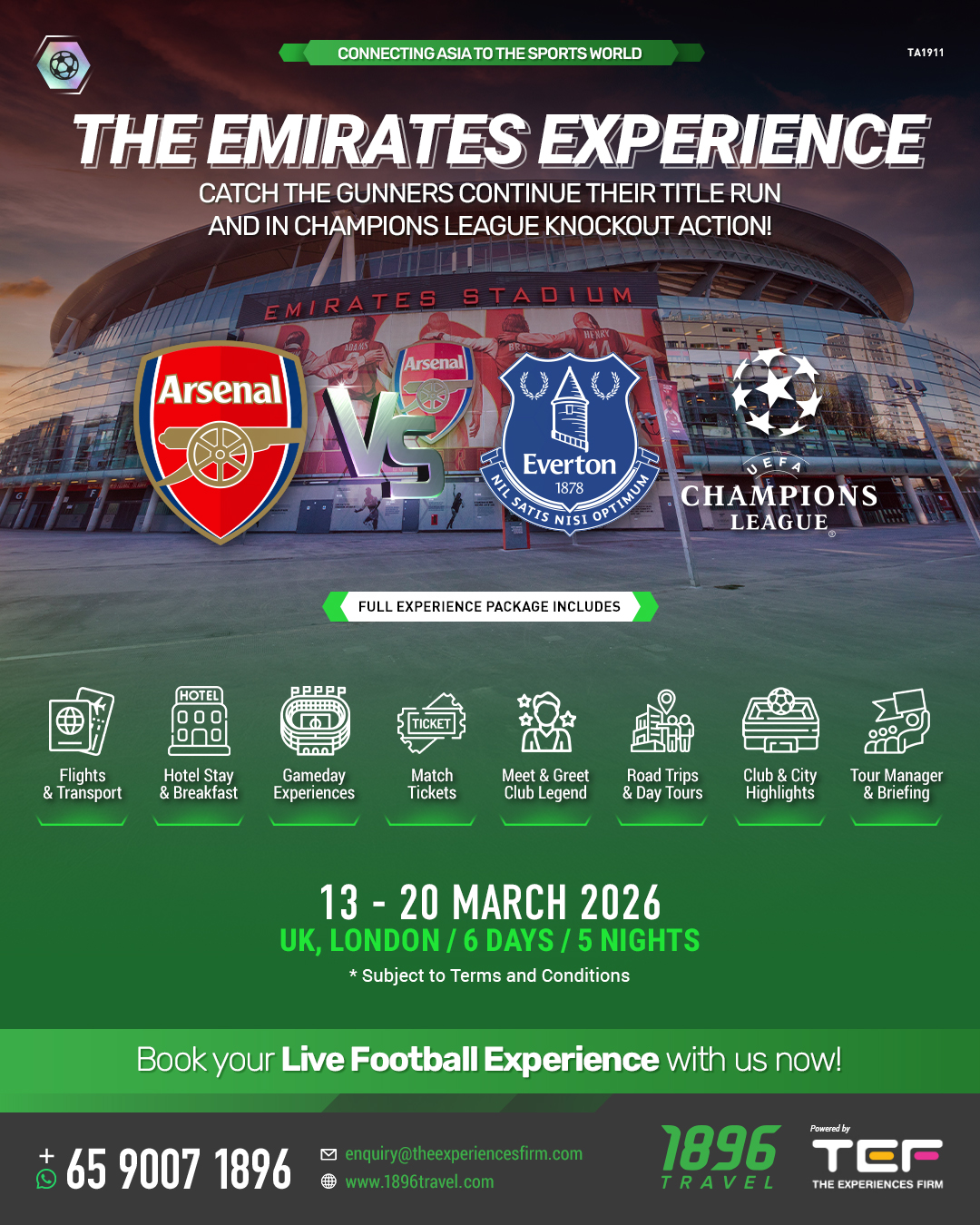 - One Singapore Tour Manager with in-depth knowledge of Arsenal and London , UK