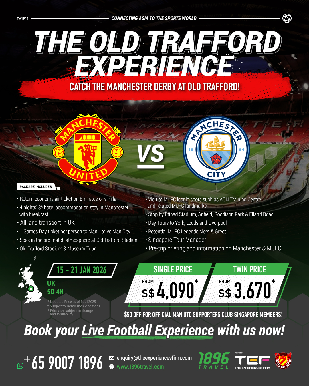 - One Singapore Tour Manager with in-depth knowledge of MUFC and Manchester, UK